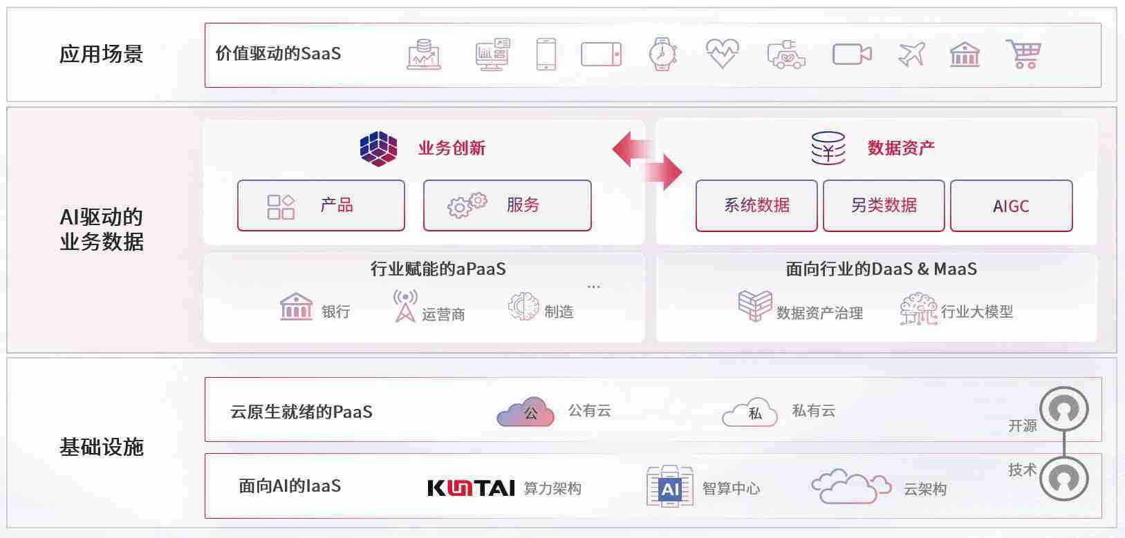 数字时代,,围绕企业数字化转型的关键要素,,,,3223.bet数码开创性的提出数云融合战略和技术体系框架,,着力在云原生、、、数字原生、、、、AI原生和信创产业上架构产品和服务能力,,,为处在不同数字化转型阶段的快消零售、、、、汽车、、、金融、、、医疗、、、政企、、、、教育、、、、运营商等行业客户提供泛在的敏捷IT能力和融合的数据驱动能力,,构建跨界融合创新的数字业务场景和新业务模式,,,助力企业级客户建立面向未来的核心能力和竞争优势,,,,全面推动社会的数字化、、、智能化转型升级。。。。
